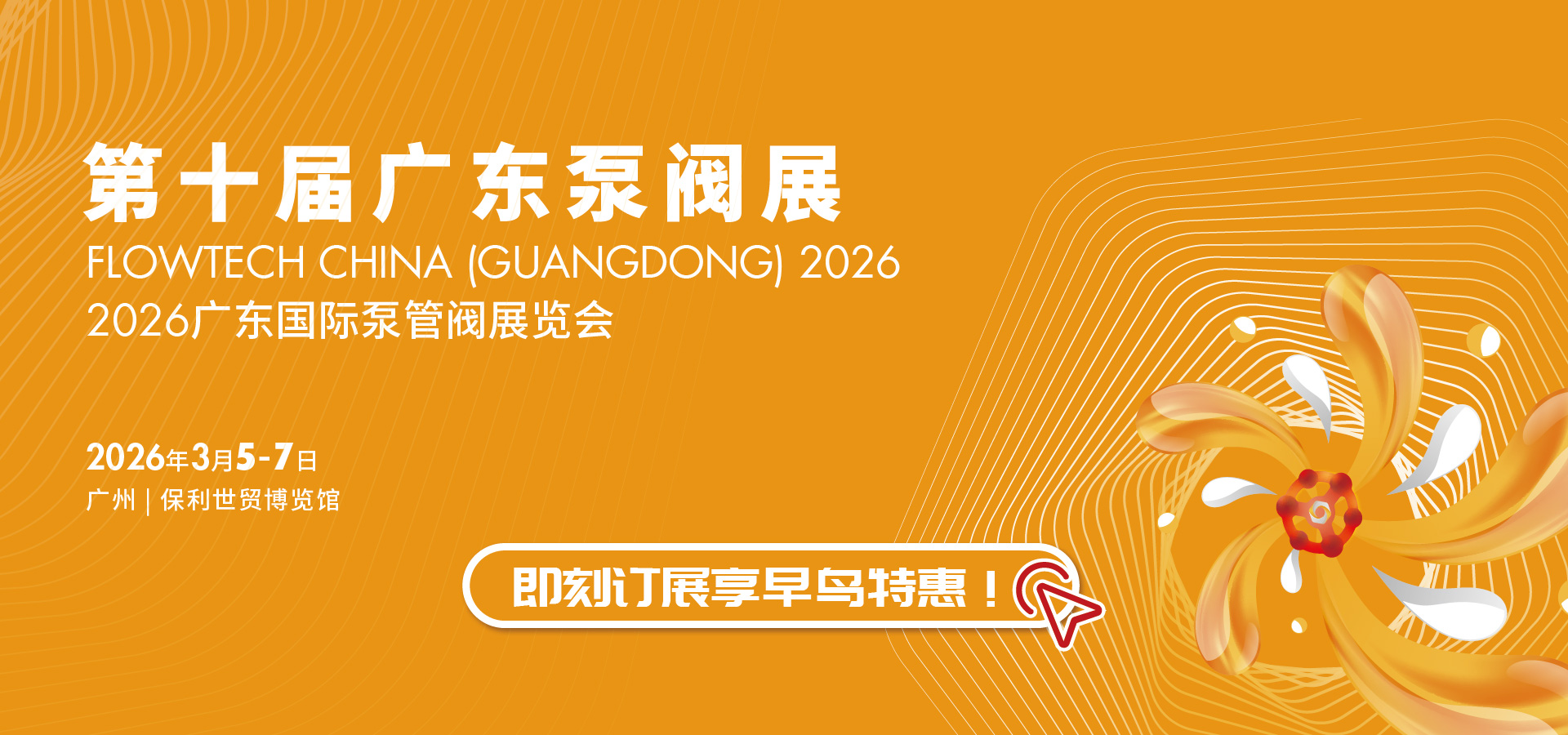 由上海荷瑞展覽有限公司、Informa Markets聯合主辦,上海荷祥會展有限公司協辦的第十屆廣東國際泵管閥展覽會(簡稱:廣東泵閥展)作為華南泵閥產業首選商貿平臺,攜手廣東水展將于2026年3月5-7日在廣州保利世貿博覽館再度啟幕!